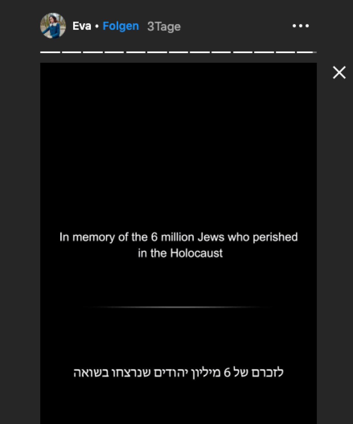 Den Hype vun Instagram wiisst ëmmer méi, dobäi dierfen d’Fotoe vun de User natierlech just positiv sinn. Keng Trauer, ëmmer frou, déi perfekt Schäiwelt. Ma den Instagram-Account “eva.stories” kéiert dëse Virstellungen de Réck. Dësen erzielt, wéi an engem Tagebuch d’Geschicht vun engem jiddesche Meedche wärend der Holocaust-Zäit. D’Erzielunge baséieren op richtegen Erliefnisser vum Eva Heyman, dat genau wéi 6 Milliounen aner jiddesch Affer an der Krichszäit ëmbruecht ginn ass.