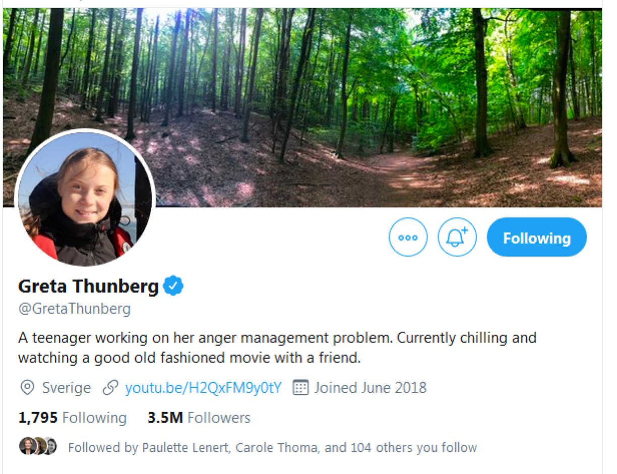 Déi jonk Klimaaktivistin huet op d’Aussoe vum mächtegste Mann vun der Welt reagéiert. Natierlech, wéi sollt et anescht sinn, op Twitter an do gouf et eng hefteg Punchline zeréck. An der Erklärung vu sengem Profil steet elo ze liesen: