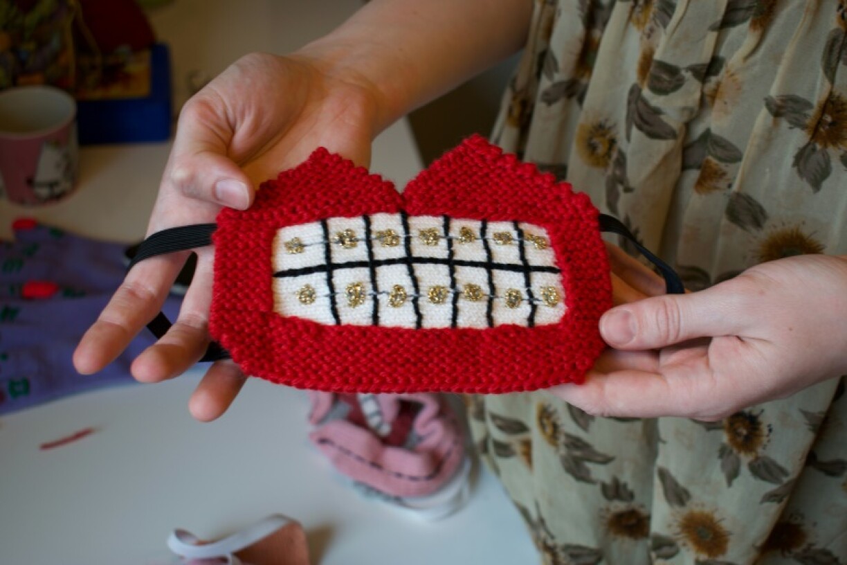 Eigentlech waren d’Maske just als Witz geduecht, sou déi 27 Joer al Designerin. Si bidde kee Schutz virum Coronavirus, ma si halen d’Leit awer ewech. Ënner anerem suergt dofir eng Mask aus där 4 Zongen eraushänken. Nieft Zongen an Zänn ginn et och Modeller mat net ganz virdeelhafte Brécken. Fir déi méi opwännegst Kreatioune brauch d’Kënschtlerin bis zu 10 Stonnen.