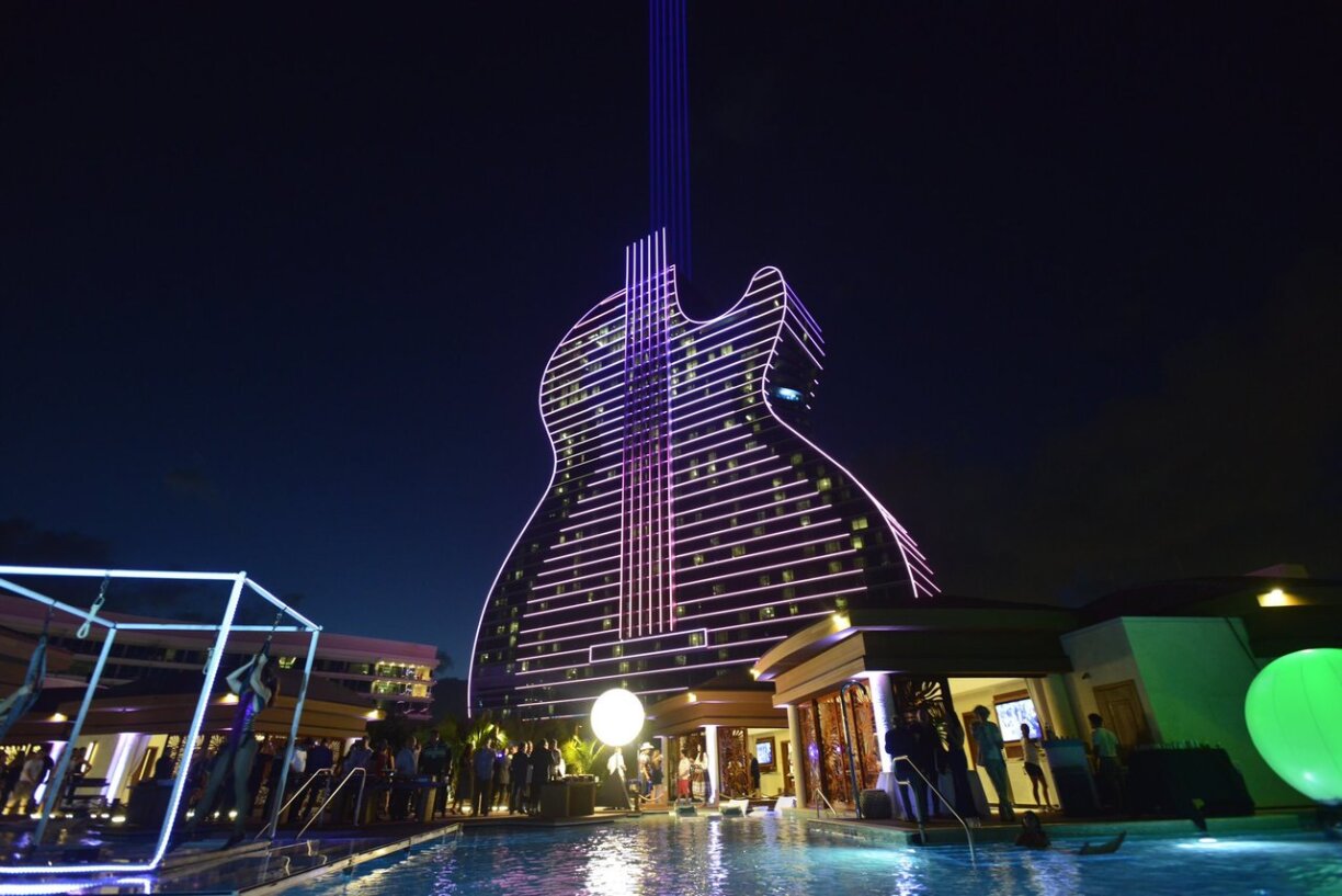 D’Gebai huet 36 Stäck, blo Fënsteren an huet d’Form vun enger Gittar. Nieft engem Hotel mat 1200 Zëmmeren, ass och e Casino mat 7000 Plazen an iwwer 3000 Spillautomaten am Gebai mat der ganz spezieller Form. Käschtepunkt: 1,5 Milliarden Dollar.