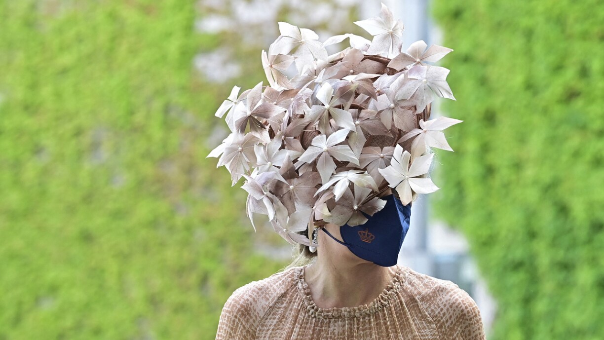 Besonnesch wéinst hirem XXL-Blummenhutt an dem hellen, transparente Rack huet d’Fra vum Kinnek Willem-Alexander zu Berlin all d’Blécker op sech gezunn.