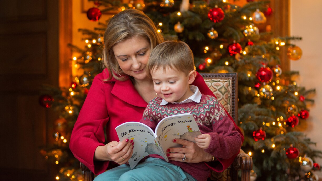 Fir hire Bäitrag zum Adventskalenner vun der Asbl, an där all Dag en neit Kannerbuch presentéiert gëtt, huet d’Ierfgroussherzogin Stéphanie déi Lëtzebuergesch Versioun vun engem franséische Klassiker erausgesicht - “De klenge Prënz” vum Antoine de Saint-Exupéry. An der Foto, déi den Haff an deem Kader gedeelt huet, gesäit een, datt der Ierfgroussherzogin hire klenge Prënz nawell seng Freed mam Buch huet.