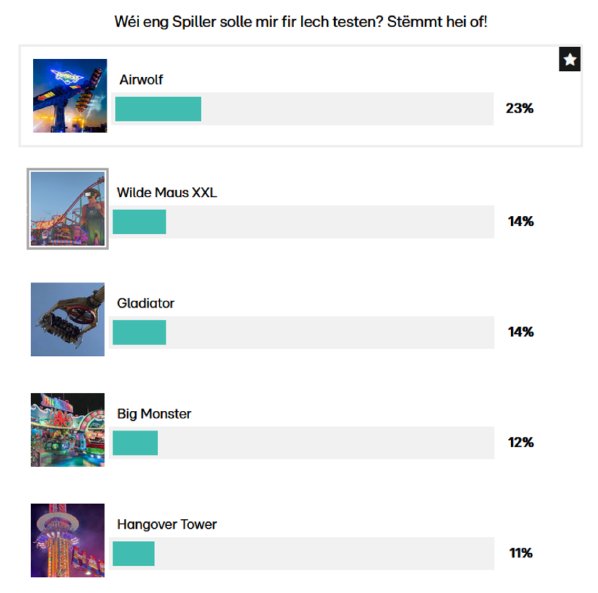 D’lescht Woch konnt Dir ofstëmmen, wéi eng Spiller mir fir Iech sollen op d’Fouer teste goen. Ma Är Äntwerte ware kloer. A genee déi hu mir fir Iech probéiert. An esou vill sief verroden. Souwuel d’Lola Frisch wéi och d’Céline Spithoven hu sech missen hiren Ängschte stellen.