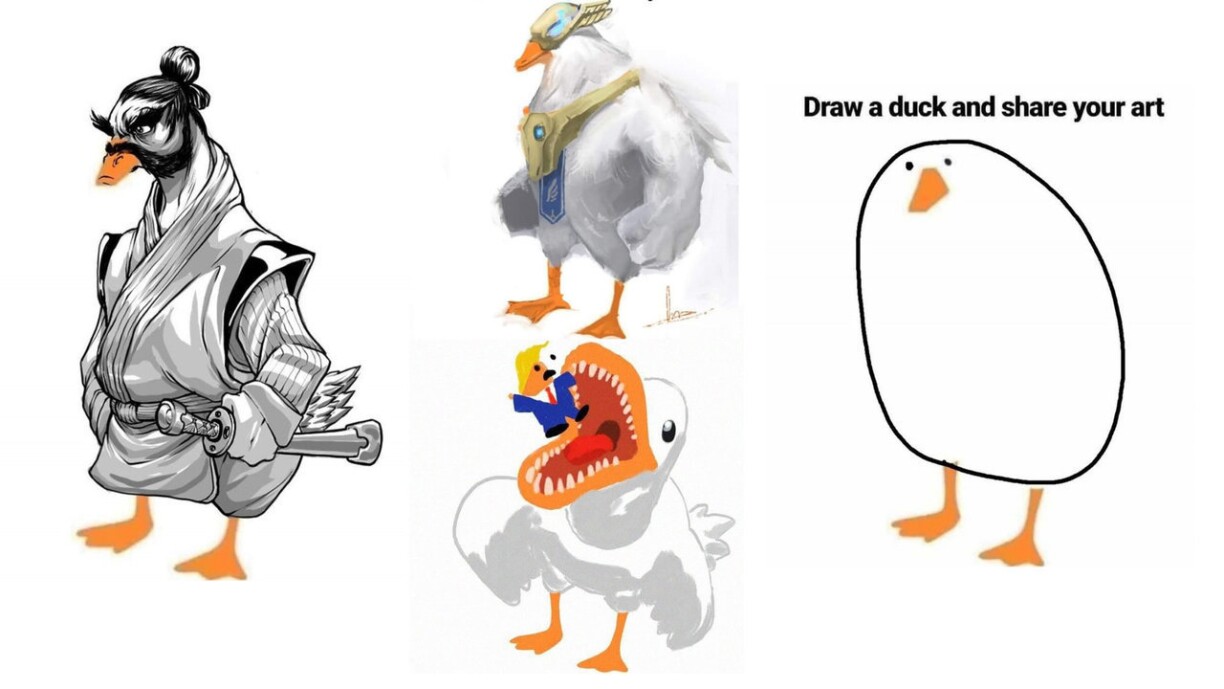 Un Hand vun enger Virlag (Schniewel a Féiss) sollen d’Internauten eng Int molen... Dobäi koume richteg cool Saachen eraus. Op der Facebook-Säit Smol Animol Memesgoufen d’User opgeruff, fir un Hand vun enger Virlag e Bild vun enger Int ze molen. Dobäi koume ganz witzeg, ganz kuriéis a ganz speziell Biller eraus. Verschidde Moler hu souguer richteg Talent...