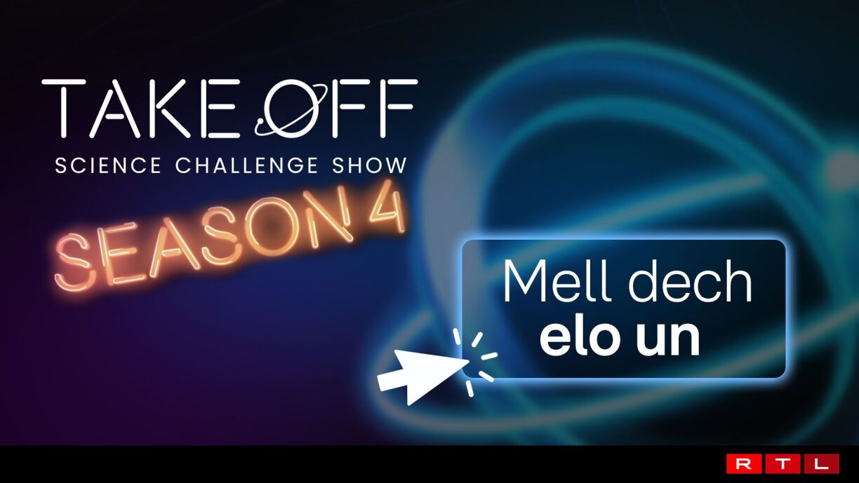 Du sichs eng nei Erausfuerderung, interesséiers dech fir d’Wëssenschaften, wëlls nei Frëndschafte schléissen a bass tëscht 15 an 21 Joer jonk? Da mell dech elo u fir déi véiert Saison. Weider Informatiounen an de Formular fir d’Aschreiwung fënnt een op www.takeoffshow.lu.