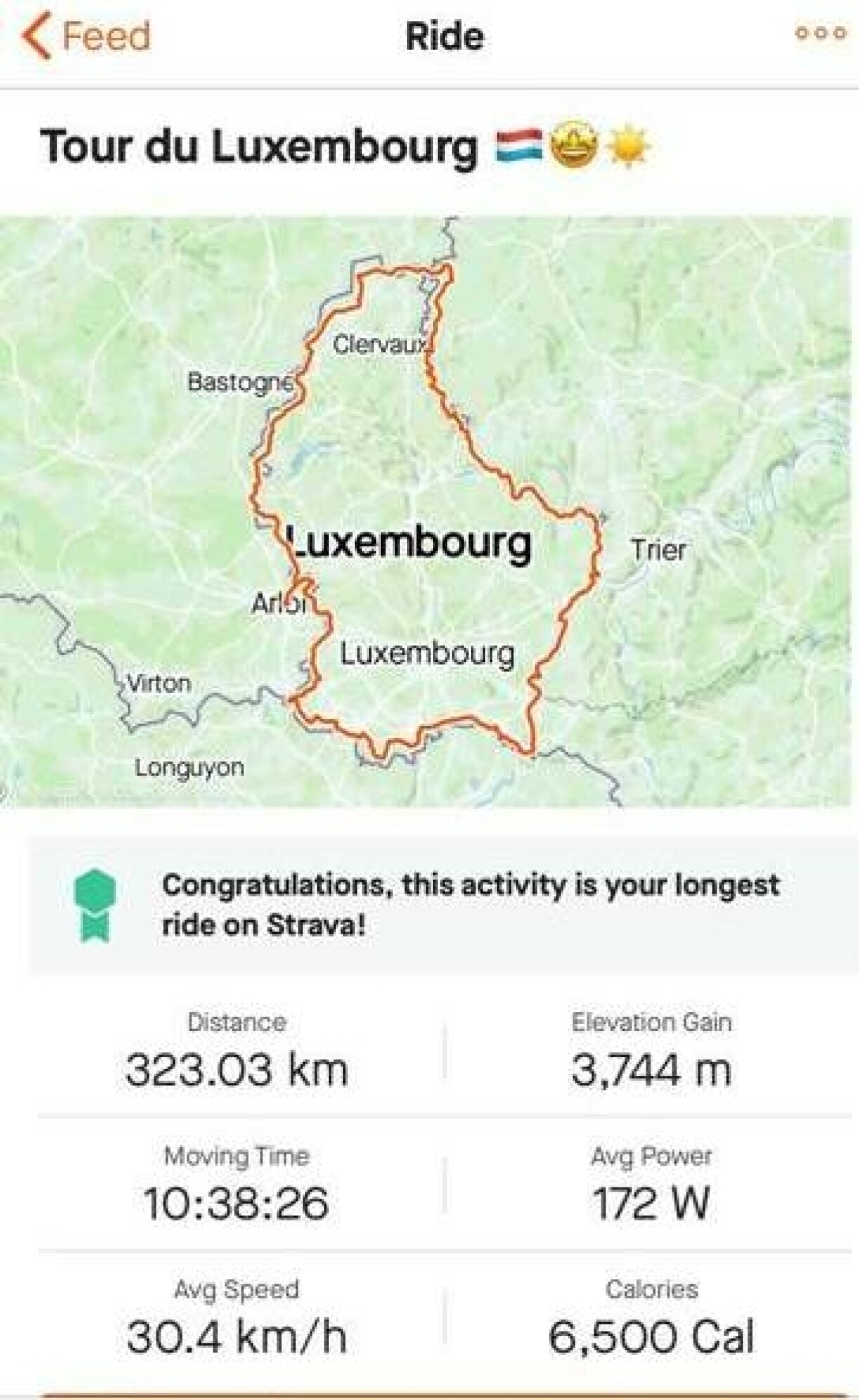 10 Stonnen an 30 Minutte waren d’Cyclisten ënnerwee, dat mat enger Moyenne vun 31 Kilometer an der Stonn. Fir d’Sportler war et eng flott Aventure, dat ganz speziell op Nationalfeierdag.