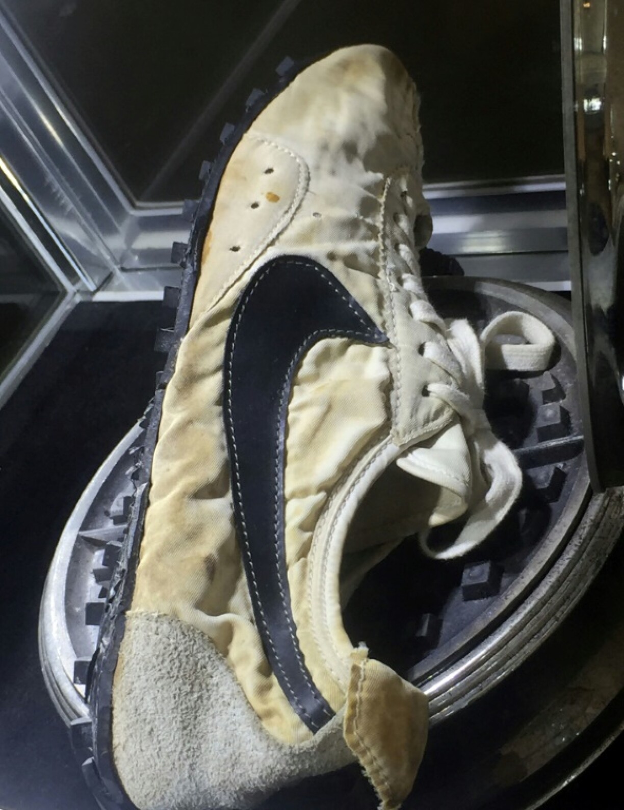 Den elo versteete “Moon Shoe” hat Sotheby’s no e geschate Wäert vun 160.000 Dollar. E gouf vum Nike-Matgrënner Bill Bowerman perséinlech entworf. Hiergestallt gouf de Schong am Virfeld vun den Olympesche Summerspiller 1972. Sotheby’s no ginn et just 12 där Schong.