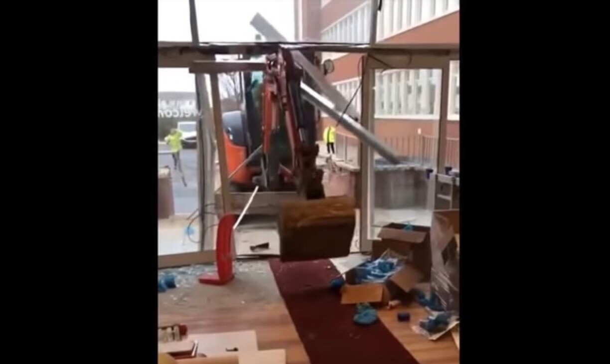 De Samuel White, en Aarbechter um Site, huet beschriwwen, wéi “iergendeen Idiot an engem Mini-Bagger” sech entscheet huet “duerch d’Mëtt vum Gebai ze fueren.”
