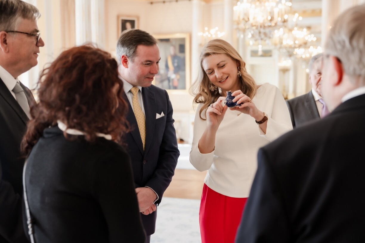 Wéi den Haff op sengem offiziellen Instagram-Site matdeelt, hätt d’Koppel “Vertrieder vun den Organisateuren, dem Comité Alstad an der Nouspelter Eemaischen”, empfaangen. Op de Fotoen aus dem Palais ass ze gesinn, wéi si ënnert anerem een Télévie-Péckvillchen, an zwee gekréint Péckvillercher zu Éiere vum Trounwiessel méi genee inspizéiert hunn.
