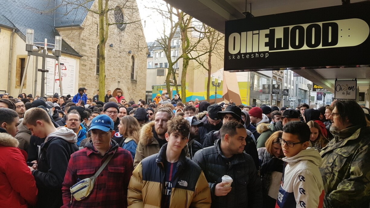 Den Olliewood an der Stad war deen eenzege Buttek aus der ganzer Groussregioun, deen dës Sneaker verkaaft huet. Duerch déi extrem limitéiert Unzuel vun deenen exklusive Sneaker goufe sech vill Leit virum Stater Buttek erwaart.