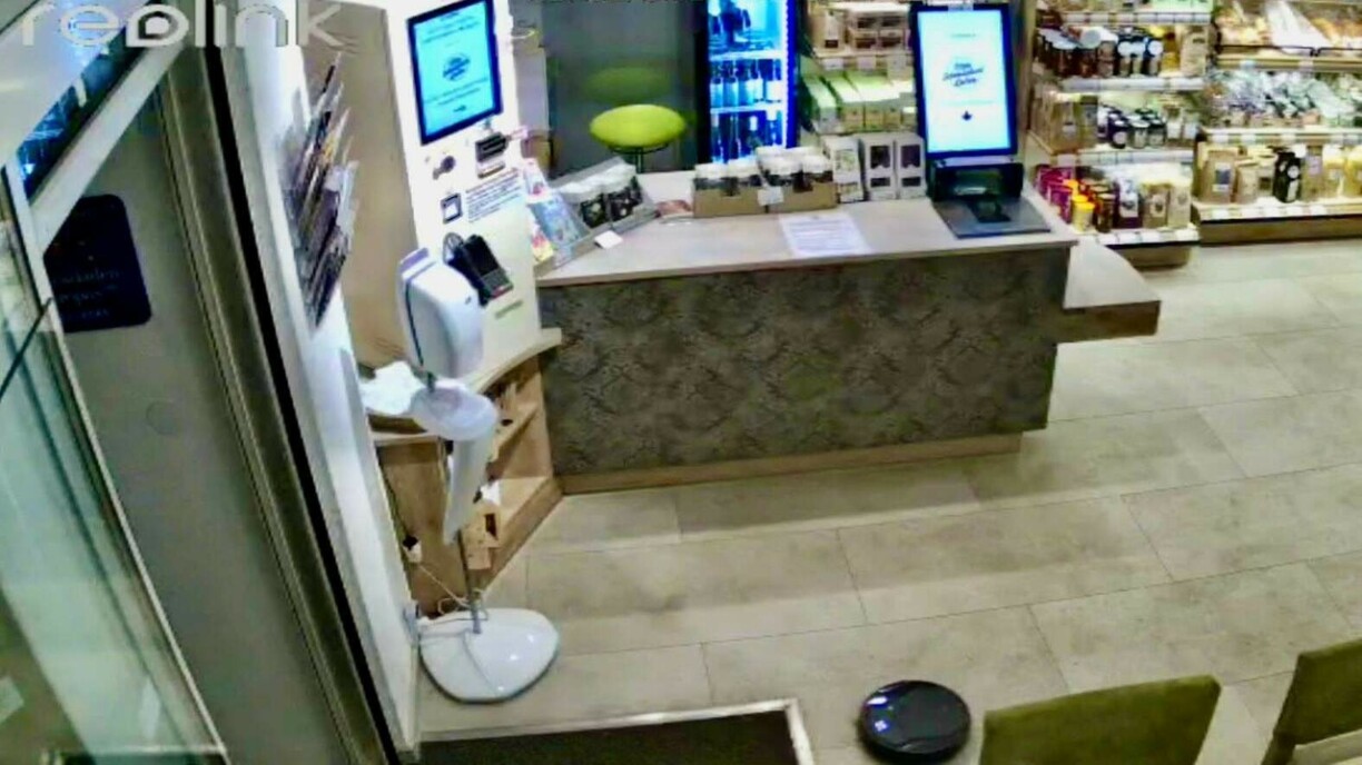 Zanter e puer Woche war hien eréischt am “Wieselburger Schmankerlladen” am Asaz, wou d’Mataarbechterin Ingrid Pruckner dem Staubsaugerroboter de Spëtznumm “Fluffy” ginn hat. Eng Iwwerwaachungskamera huet dem “Fluffy” seng Flucht dokumentéiert: Ëm genee 7 Auer, zu enger Zäit wou den Apparat seng Aarbecht normalerweis u sech scho fäerdeg hätt, sinn d’Diere vum Geschäft am Testbetrib ee Moment kuerz opgaangen.