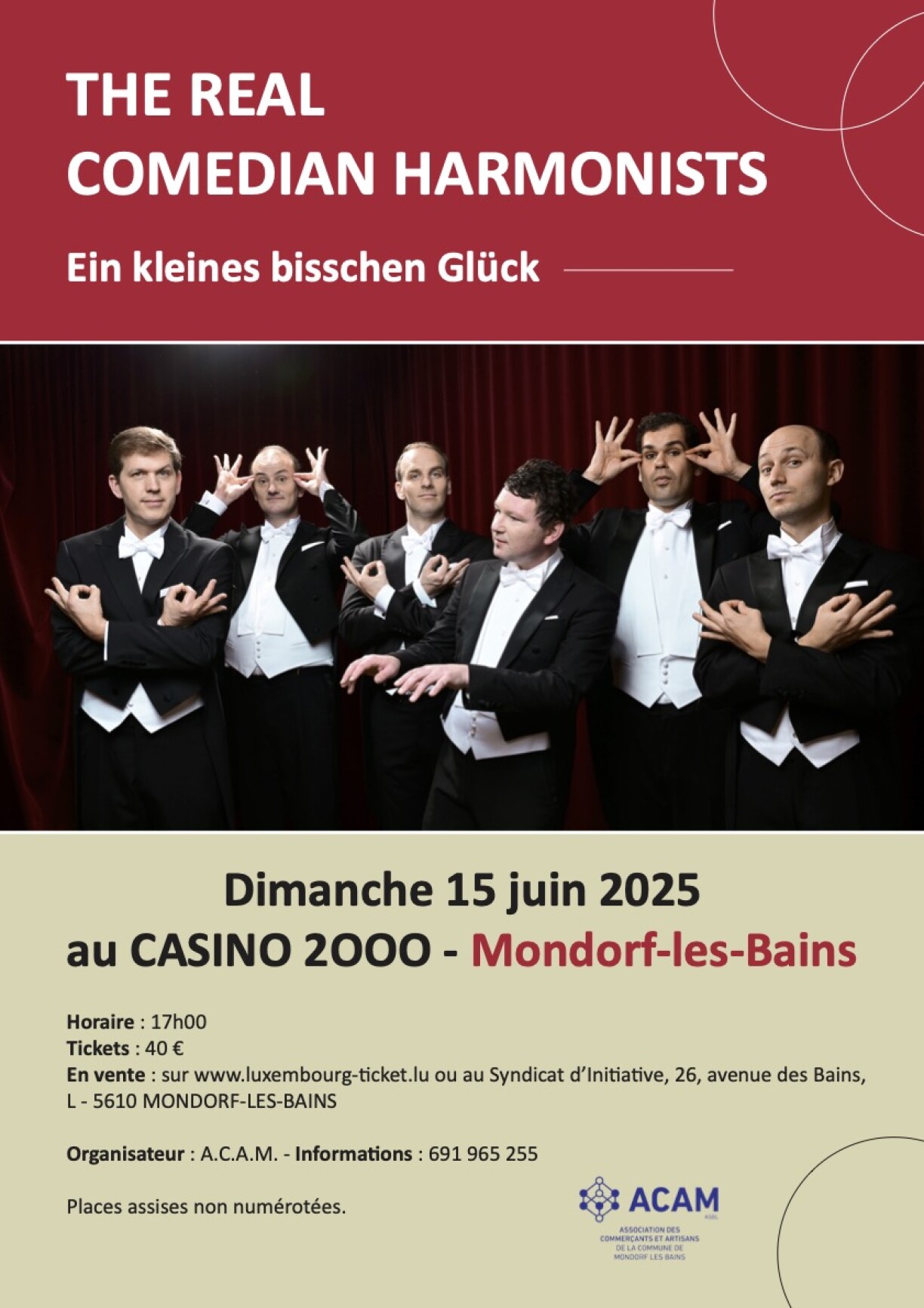 De Loïc Schlentz kënnt de 15. Juni mat de ‘Real Comedian Harmonists’ op Mondorf an de Casino 2000. De Sänger, Schauspiller a Mover deen déi franséisch an déi lëtzebuergesch Staatsbiergerschaft huet, huet fir d’éischt Klarinett gespillt, ier et hie bei de Gesank gezunn huet. Seng Basis huet hien am Stater Conservatoire fonnt, huet bei Schoulopféierunge matgemaach an no sengem Ofschloss op der ‘Universität der Künste’ zu Berlin huet hie vill Erfarungen gesammelt. Elo ass hien mat ‘The Real Comedian Harmonists’ op Tournée. www.realcomedianharmonists.com/schlentz