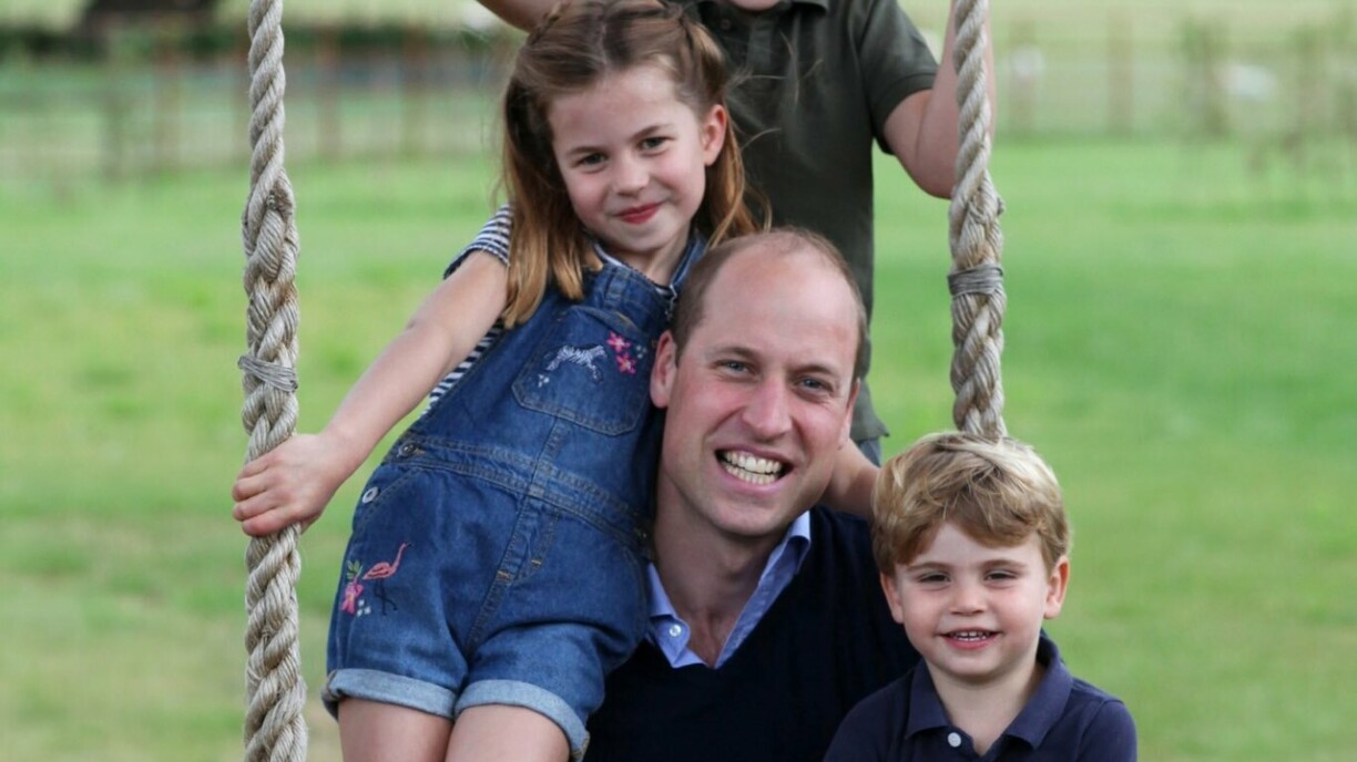 Zesumme mam Prënz George, der Prinzessin Charlotte an dem Prënz Louis huet den Duke of Cambridge fir eng Foto poséiert, déi elo fir säi Gebuertsdag dëse Sonndeg a fir Pappendag elo publizéiert gouf.