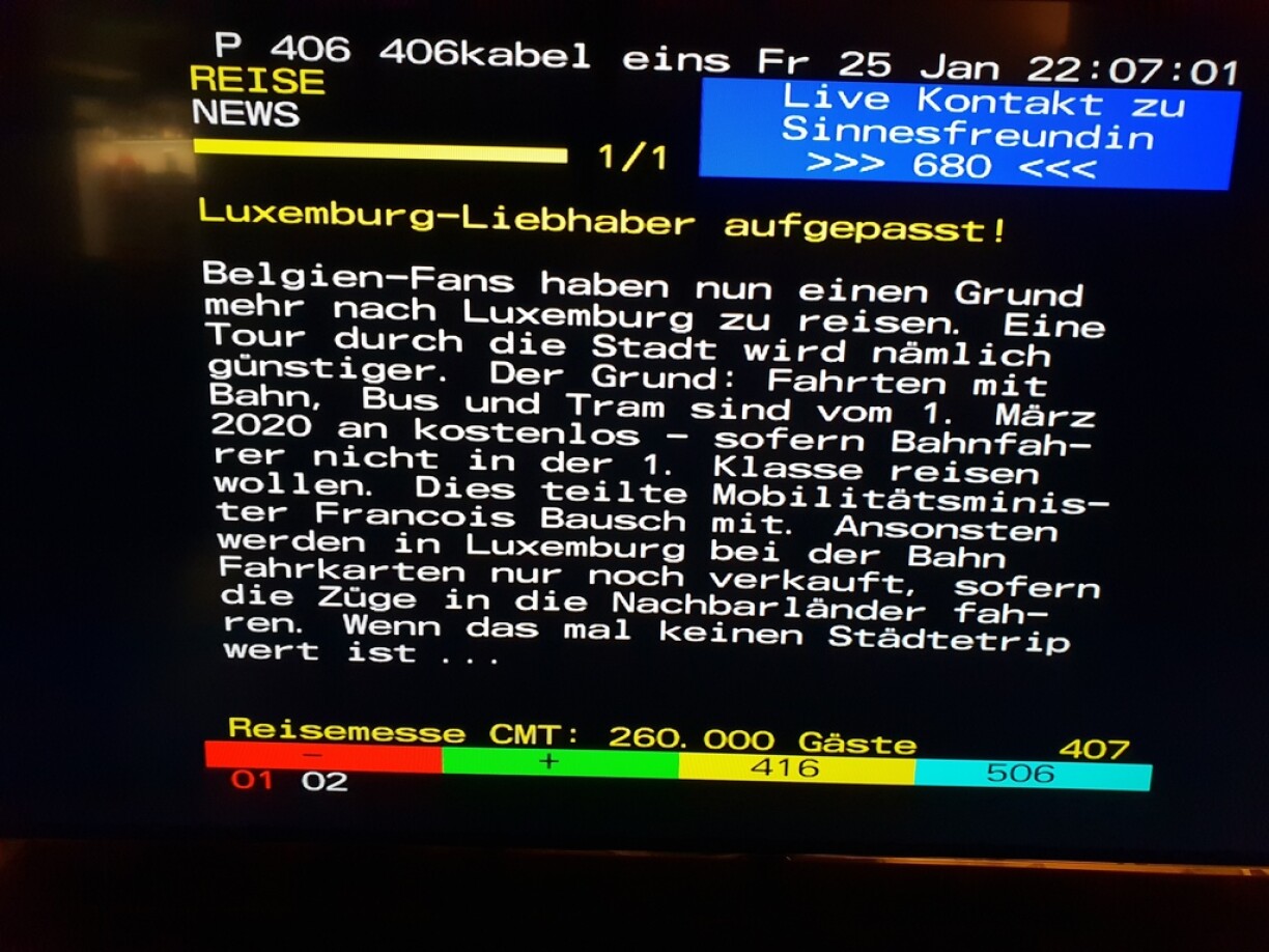 ... well op sengem Tëleetext schwätzt den däitsche Sender “Belgien-Fans” un a schreift dann iwwer Lëtzebuerg - an zwar iwwer de gratis ëffentlechen Transport!