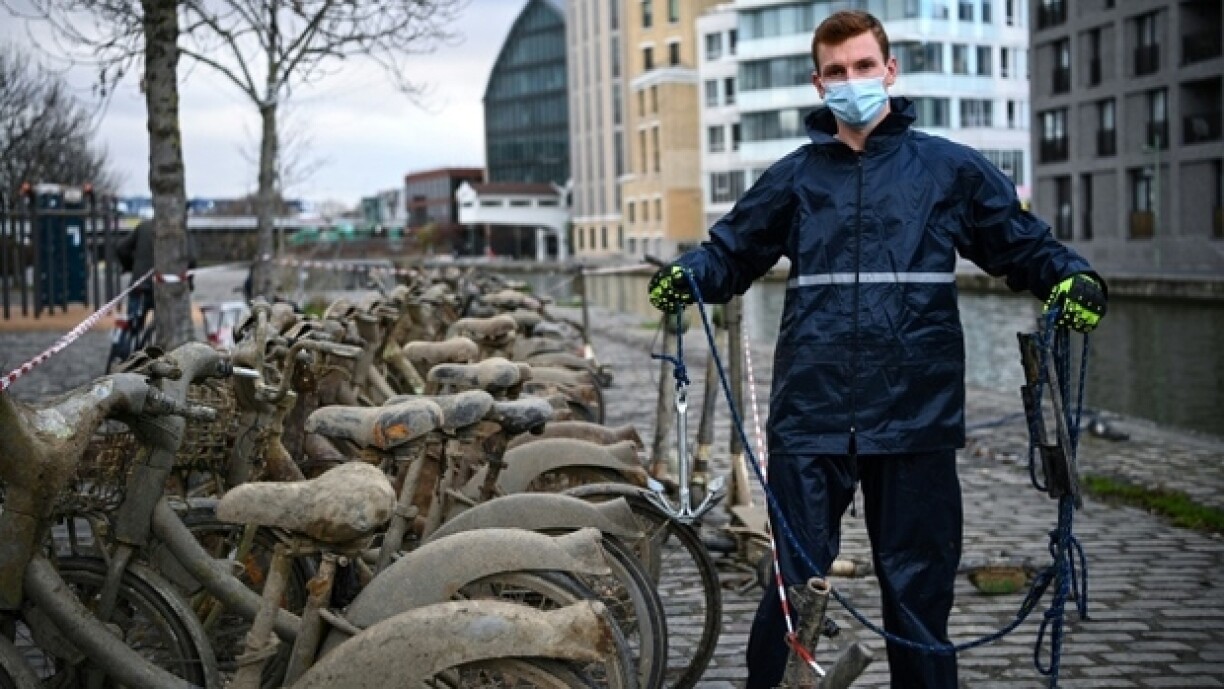 Zwee engagéiert Fëscher hu mat Hëllef vun engem staarke Magnéit 52 där Vëloen aus engem Kanal um Bord vu Paräis gefëscht.