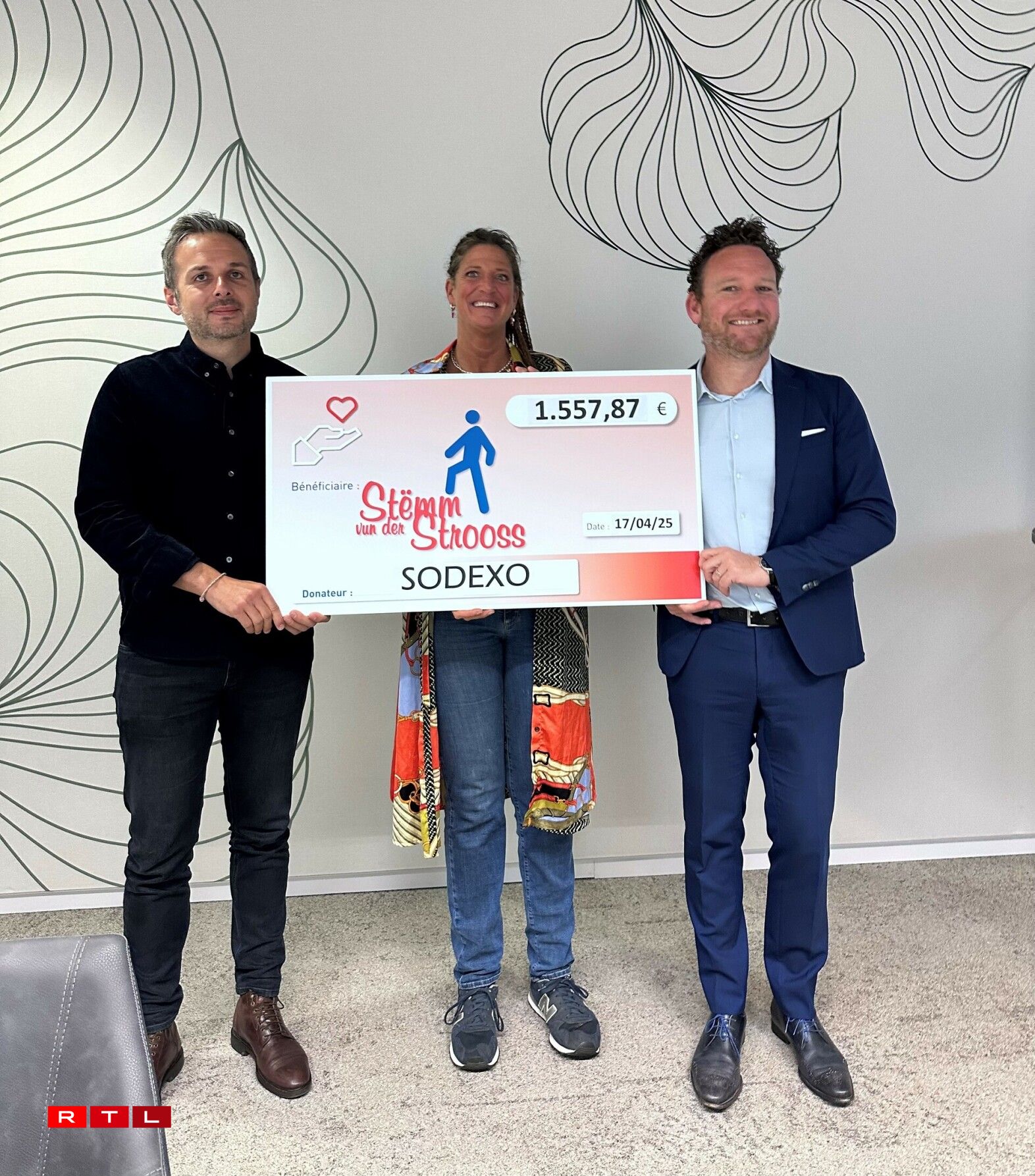 1.557,87 € – so viel haben die 2.300 Mitarbeitenden von Sodexo im Rahmen der Solidaritätsaktion „arrondi sur salaire “ zugunsten der Organisation Stëmm vun der Strooss gesammelt.
