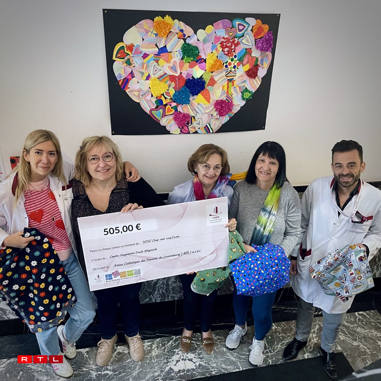 D’Action Catholique des Femmes du Luxembourg (ACFL) a.s.b.l. huet 505 Euro fir de CHEM gesammelt. Dëst Joer keeft d’Psychiatrie mat dësem Don Material fir hir Bastelatelierë mat de Patienten.