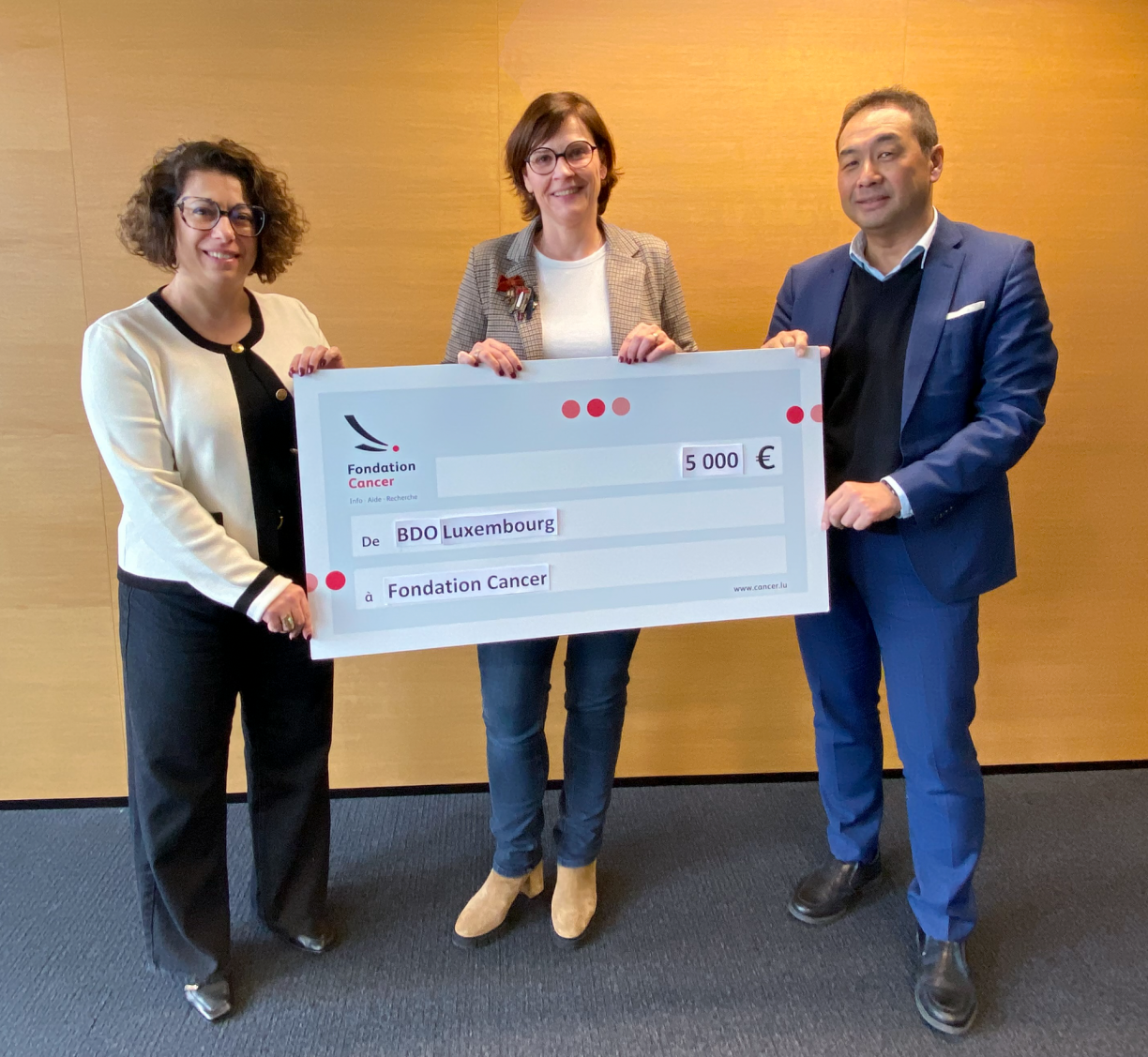 Mat grousser Generositéit huet BDO decidéiert, 5 000 € un d’Fondation Cancer ze spenden.