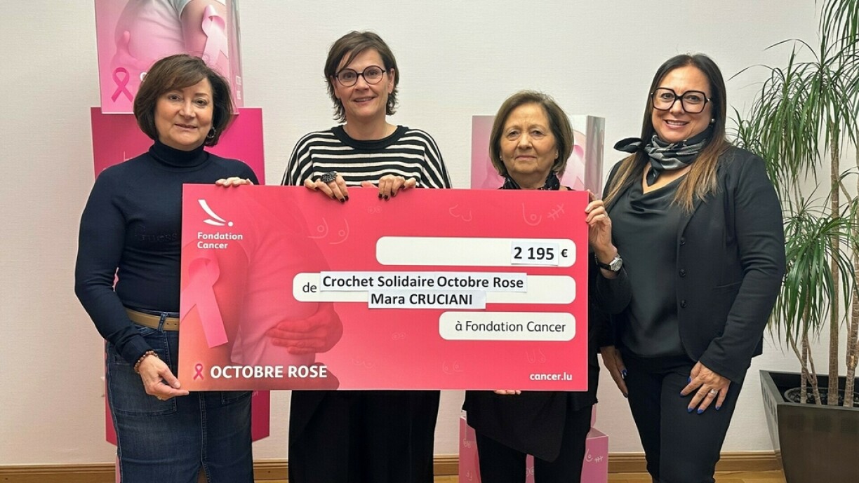 Am Kader vum Broschtkriibsmount Rosa Oktober huet d’Mara Cruciani d’Fondation Cancer mat senger alljärlecher Solidaritéitsaktioun ze ënnerstëtzt. D’Mara huet d’Akommes vun der Ausstellung Crochet solidaire vum Mount Oktober integral un d’Fondation Cancer gespent.