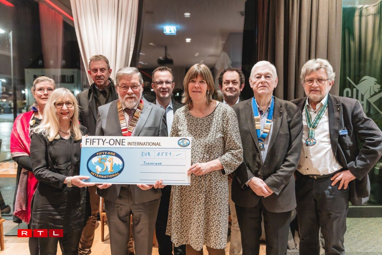 En date du 19 février 2026 a eu lieu la passation des pouvoirs du District 104 du Fifty-One International (FOI) au restaurant B13 à Bertrange. A cette occasion fut remis un chèque de 1.551 € à l’association Trauerwee asbl.