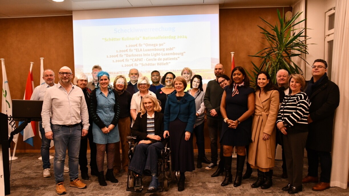 De 6. Februar 2025 kruten Omega 90“, „ELA Luxembourg asbl“, „Darkness Into Light Luxembourg“, „CAPAT - Cercle de patients“ an „Schëtter Hëlleft” e Scheck vu jeeweils1.200€ iwwerreecht. Dës Done resultéieren aus dem Erléis vun Nationalfeierdag 2024, wou Bierger*innen aus der Gemeng Schëtter kulinaresch Stänn aus 8 verschiddene Länner bedriwwen hunn. Mat vill Léift hu si national an international Spezialitéiten ugebueden an d’Visiteuren esou op eng kulinaresch Weltrees geschéckt.