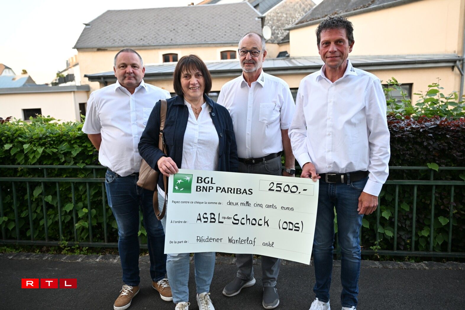 D’Réidener Wanterlaf asbl konnt direkt 4 Schecken ausstellen, dëst un d’Associatiounen Trisomie 21 Lëtzebuerg, un “Op der Schock”, “Pour une parenthèse” an un “Dysphasie.lu”.