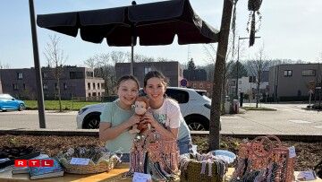 Am Diddelenger Quartier “Op Lenkeschléi”, op der Plaz Cécile Biever-Wagner, haten d’Kanner um Sonndeg hire Stand opgeriicht. Déi zwee haten Angscht, et kéimen net vill Leit. An d’Elteren hu sech gefrot, wat hir Kanner hinnen do agebrockt hätten. Et koum awer alles vill besser ewéi gemengt. “Et si vill Leit komm.” Dobäi laachen déi zwee Meedercher iwwert d’ganzt Gesiicht.