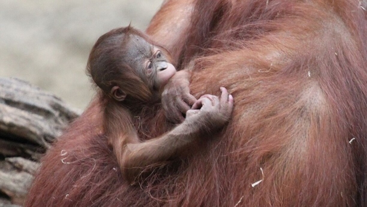 Et ass antëscht schonn de siwenten Orang-Utan-Bëbee, deen zanter der Ouverture vum Darwineum - der Heemecht vun de Mënschenafen am Rostocker Zoo - am Joer 2012 d’Liicht vun der Welt do erbléckst huet.