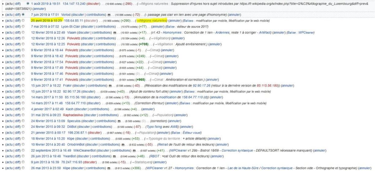 Am Historique vun den Anträg, déi een alleguer op de Wikipedia-Säiten kann noliesen, kann ee sech e Bild dovu maachen, winni Ännerungen am Artikel gemaach goufen.