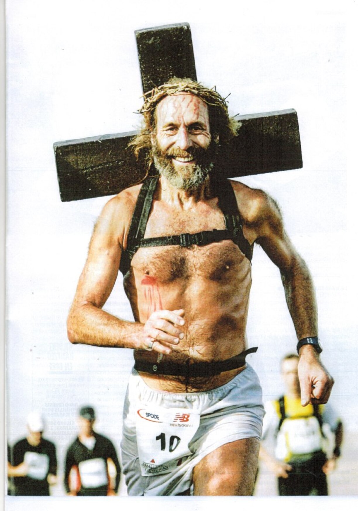 De Gilbert Dantzer leeft muer als ‘Jesus’ de Nuetsmarathon mat. Iwwer 330 Marathonen huet hie schonn hannert sech bruecht an doriwwer eraus ass hie schonn 1.500 Coursen gelaf. Hie fillt sech wuel, wou d’Stëmmung gutt ass an Iessen an Drénken garantéiert sinn. Dëse Samschdeg geet hien wéi 17.000 aner Leefer un den Depart vum 18. Nuetsmarathon, just dass hien duerch seng Verkleedung a säin Kräiz en Highlight ass. www.ing-night-marathon.lu