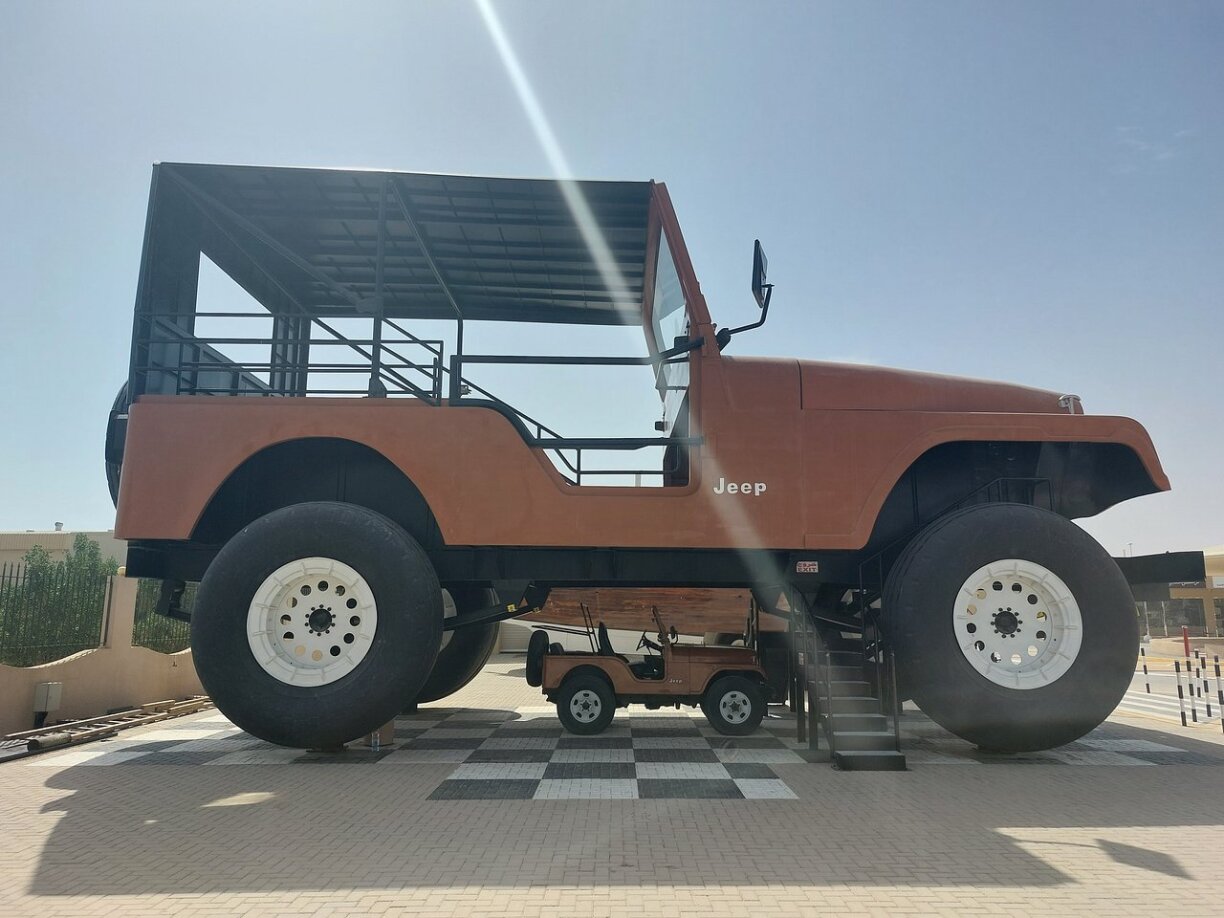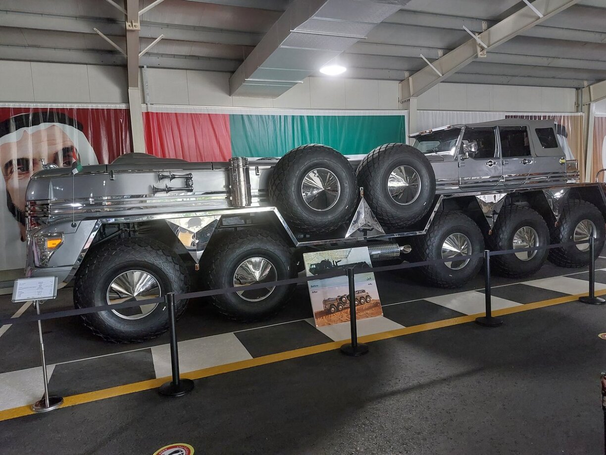 Matten an der Wüüst, do wou eigentlech Kaméiler doheem sinn, do ass déi eemoleg 4X4-Kollektioun mat Auto, Jeep, Camionen a Militär-Gefierer ënnerdaach komm.