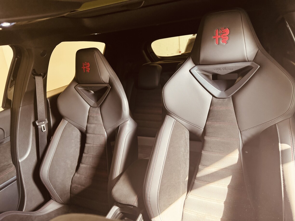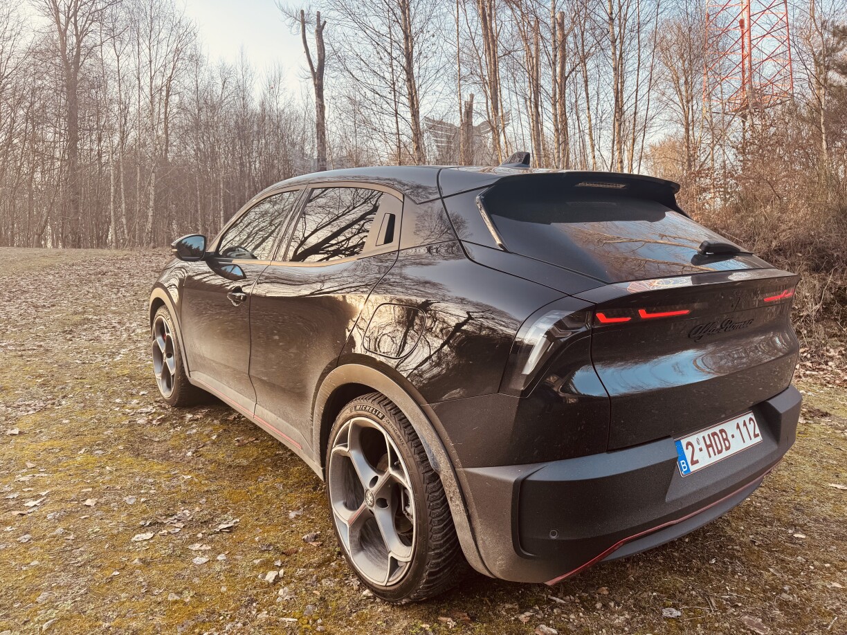 Offiziell gëtt Alfa Romeo de Verbrauch, mat 17,5 kWh un. Dat ass awer Wonschdenken. Wann ee permanent am Eco-Modus ënnerwee ass, da kann een op ee Verbrauch vun ënner 20 kWh kommen. Wann ee sech een Auto mat 280 PS keeft, wäert een awer net nëmmen an deem Modus ënnerwee sinn. Mäi Verbrauch louch bei ronn 21,5 kWh. Den Akku huet eng Kapazitéit vu 54kWh, déi versprécht eng Autonomie vun 334 Kilometer. Eng 250 Kilometer sinn et reell. Et ass also keen Auto fir reegelméisseg domadder an d’Vakanz ze fueren.