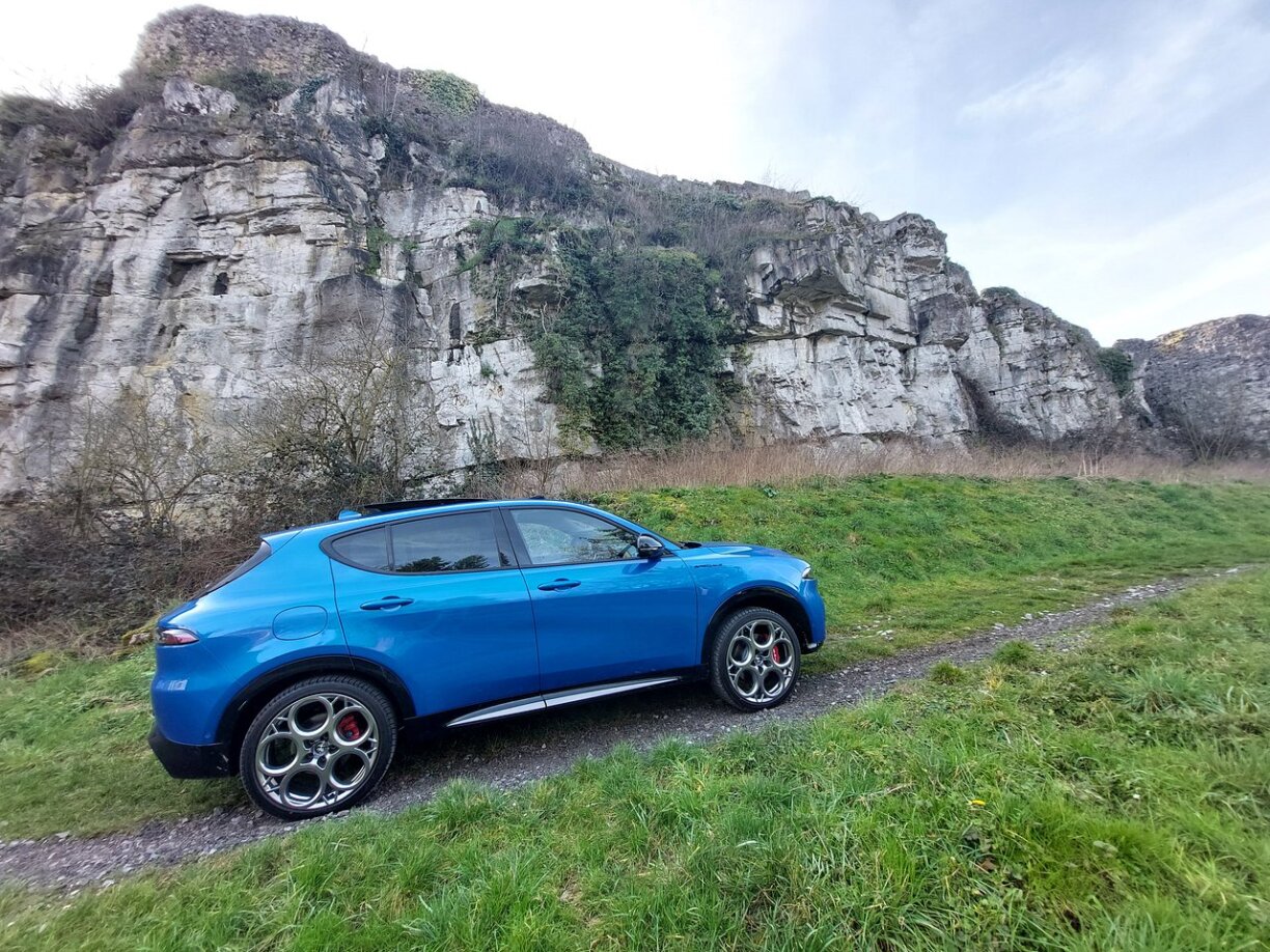An du goung et op en ofwiesslungsräiche Parcours ronderëm Huy an der Belsch, a mir hu gemierkt, dass den Alfa Romeo Tonale sech ganz effizient awer och méi dynamesch beweege léisst. De bal zwou Tonne schwéieren Auto kann och mol méi flénk em Kéieren, an obwuel 20 Zoll Schlappe montéiert waren, bleift de Confort net ganz op der Streck.