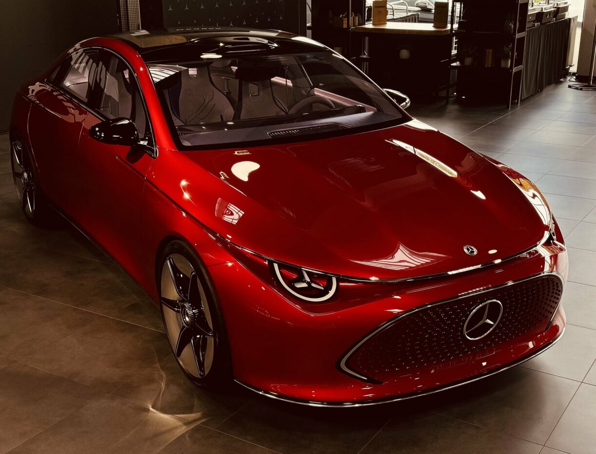 Engersäits den EQXX an anersäits den CLA. Béid Autoen mat Elektroundriff.
