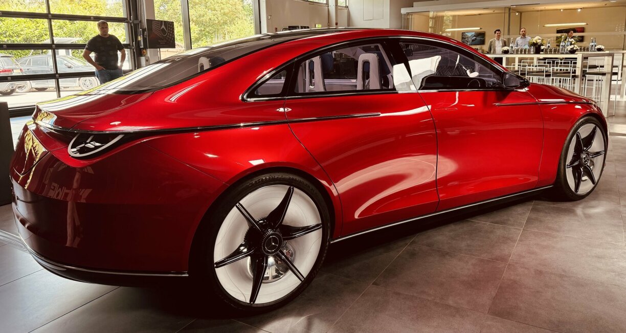 Dee soll dat nächste Joer, an enger liicht modifizéierter Form, a Produktioun goen. Mat deem wëll Mercedes dann op eng Autonomie vu 750 Kilometer laut WLTP-Norm kommen. Dat wier dann ee Verbrauch, vun 12 kWh op 100 Kilometer. Dobäi geet Mercedes dovunner aus, datt een den Auto, dank engem 800 Volt System, an enger véierel Stonn esou wäit ka lueden, datt een nees eng 400 Kilometer ka fueren.