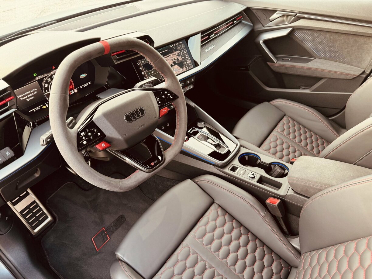 Och bannen am Auto huet sech net därmoosse vill geännert. Et gouf haaptsächlech an een neit Steierrad investéiert. Dat ass elo net méi komplett ronn wéi een et bis elo aus dem RS 3 kannt huet, mee uewen an ënne riicht.
