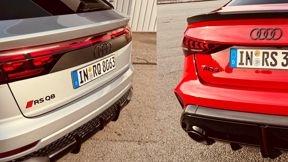 Wann ech soen am Ganzen, da schwätze mer an den nächste Minutten iwwer zwee Autoen. Engersäits den Audi RS3 an anersäits den Audi RS Q8 Performance. De Rich Simon konnt se béid fueren.