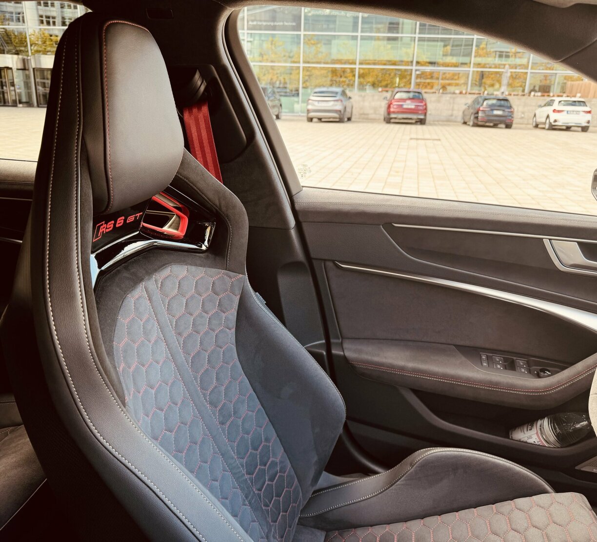 Mir haten d’Chance natierlech och fir den RS6 GT ze fueren. Leider awer net op der Rennstreck, mee am normale Verkéier ronderëm d´Mammenhaus vun Audi zu Ingolstadt. D’Teststreck hat eng gutt 150 Kilometer an do konnt ee sech zum Deel dann och schonns bësse mam Auto amuséieren. Ouni laang ronderëm de Bräi ze schwätzen. Deen Auto mécht Spaass, fir en ze fueren. Ee Kombi mat Gokart Feeling. Esou kéint een d´Fuererliefnis ëmschreiwen. Op Schinne geet et duerch d’Kéieren. An deenen ass ee duerch d’Schuelesëtzer, bei deenen och nees zum Deel Karbon an de Asaz koum, gutt gehalen.