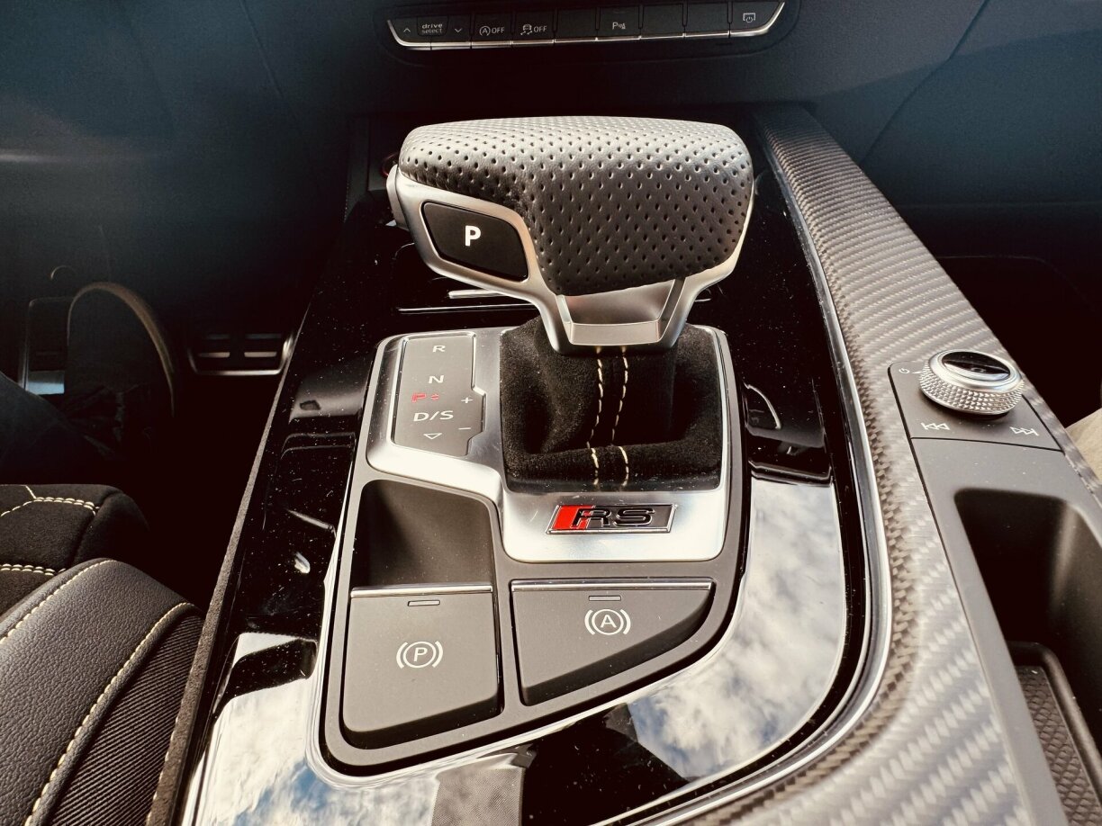 Där Schuelesëtzer, goufen et bis elo am RS6 nach net. Wat Schued ass, et muss een déi Sëtzer nach manuell verstellen. Bei esou engem deieren Auto ass dat dach éischter d’Ausnam. D’Boîte ass eng 8 Gang Automatik, déi keng Wënsch oppe léist. Et kann een natierlech och iwwer d’Schaltwippen d’Gäng wiesselen. Déi Wippe sinn extrem kleng a wann ee kuerz Fanger huet, da gëtt de Wee wäit an d’Steierrad huet een net méi richteg gutt am Grapp.