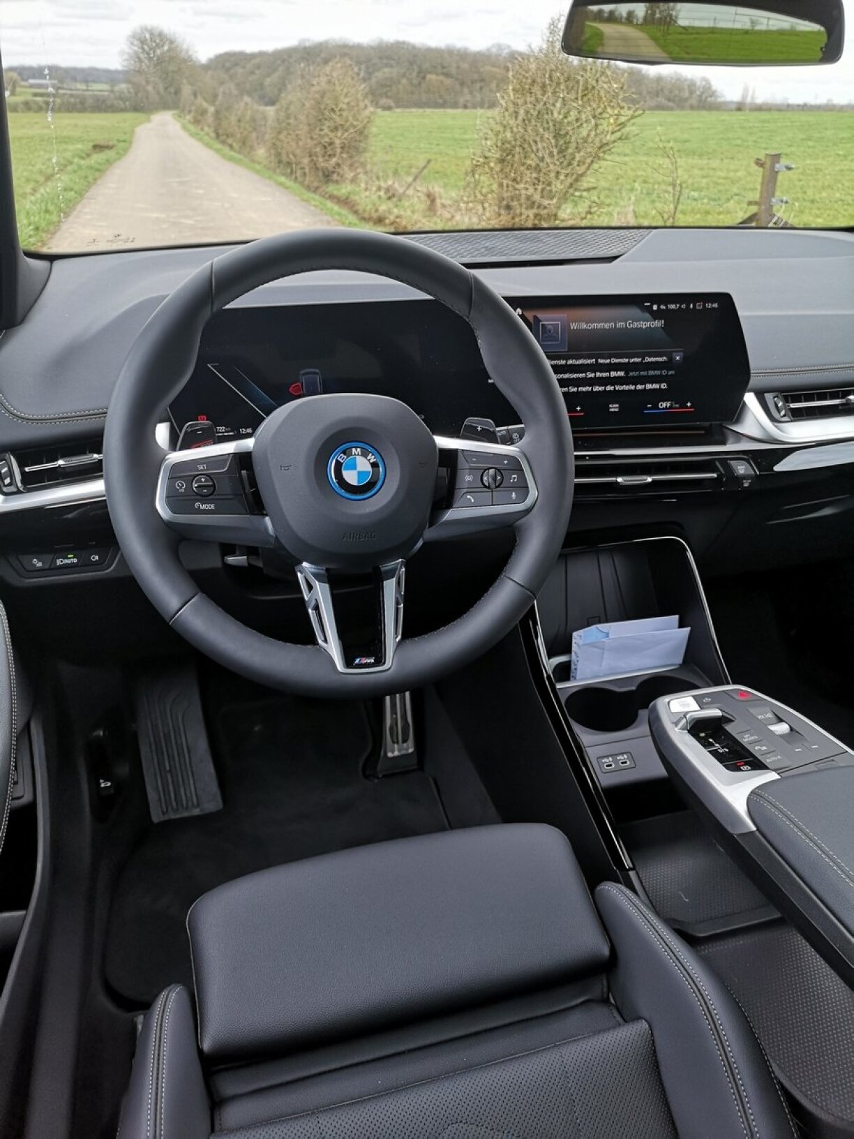 Gutt funktionéiert huet och dat reng elektrescht Fueren; am Idealfall bis zu ronn 80 km wäit, un der Borne gelueden ass den 2er Active Tourer nees a gutt 2 Stonne voll. Strikt am Elektro-Modus bleiwen ass dann och méiglech, wann een an de Menüen e bësse ronderëm sicht. De Bensinner dogéint eleng fueren fir en z.B. douce op Temperatur ze brénge geet just mam aggressive Sport-Modus. Schued, do leid mäi Gefill fir d’Mécanique dann awer.