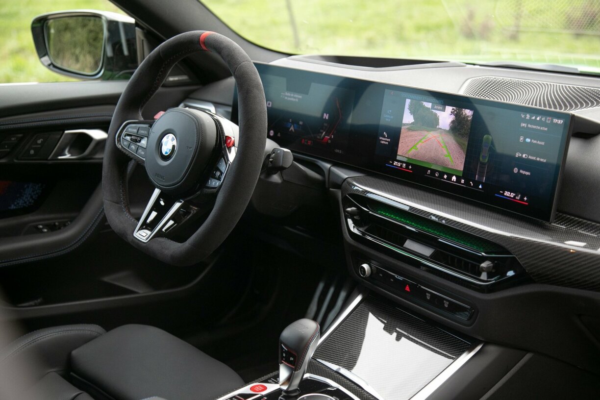 Sportlech a fuererorientéiert, woubäi den Tableau de Bord mam “Curved Display” wéi bei BMW üblech digital ass. Gutt gefall hu mer déi optional Sportsëtzer mat beliichtem M-Logo an de Kappstäipen. Wiem et net op Euro mee op Gramm ukënnt, ka sech och Carbon-Schuelesëtzer bestellen. Allgemeng mécht de Banneraum awer erëm méi en héichwäertegen Androck wéi dat nach bei de leschte BMW-Testautoe war, déi ech gefuer sinn. Präis-Leeschtung schéngen erëm an den Equiliber ze kommen.