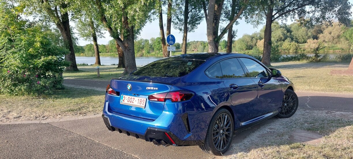 Also de BMW M235, dat ass e 4diregen Gran Coupé, dee sech och optesch ganz attraktiv a sportlech presentéiert. E gouf komplett iwwerschafft, mat villen technesche Raffinessen, an ass vu sengem Temperament hir duerchaus och eppes fir Ausflig op di berüümten Nordschläif um Nürburgring ze huelen, wa gewënscht.