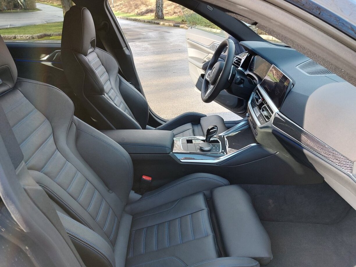 Bon do ass et um Tableau de bord de gewinnte Look aus dem aktuellen 3er BMW. Dezent, elegant an héichwäerteg ass alles verschafft. An d’A sprangen engem gläich d’M-Sportsëtzer mat super Säitenhalt an dach nach confortabel. Bemol, kaschten 835 Euro extra!