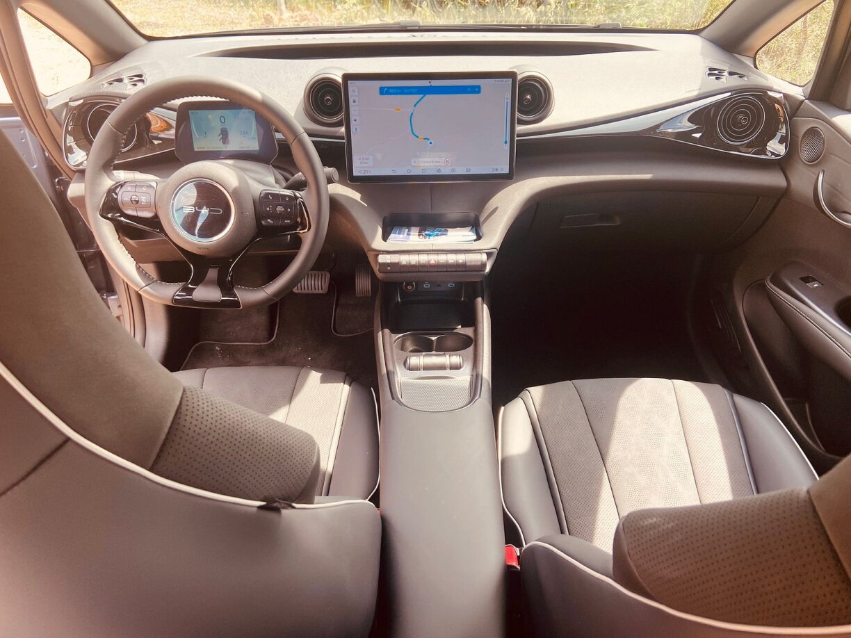 De BYD Dolphin ass vum Design hir, ee flotte léiwen Auto an deems du genuch Plaz hues. Hien ass ganz gutt verschafft. Do si vill Marken, déi vill méi kaschten, déi sech kéinten eng Scheif erofschneiden. Alles ass iwwersiichtlech an du hues genuch Méiglechkeeten, fir däin Handy an aner Saachen ze placéieren.