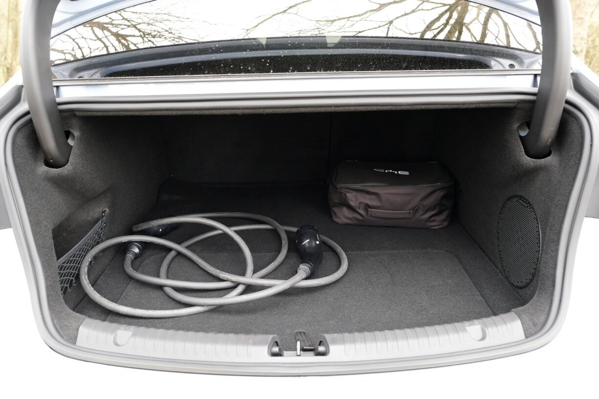 An ob. Ugefaange bei der Motorisatioun: 530 PS gounge bei eiser Topversioun un déi 4 Rieder, eng Autonomie vu knapp 500 km stoung bei 100% Batterie um Display. U Motorleeschtung huet et absolut net gefeelt. Esou wéi d’Typeschëld 3.8s et versprécht, huet d’Acceleratioun engem den Otem geholl.