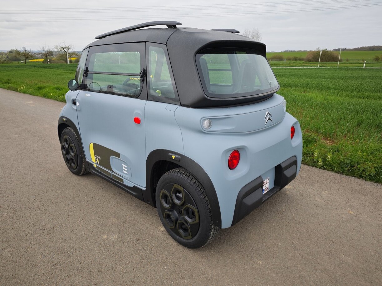 An éischter Linn puristesch a symmetresch mat engem Hauch vu Concept Car. An dat ass nawell net ze wäit hiergeholl, well verschidden Iddien et vum Concept Car et bis an d’Serie gepackt hunn. Esou verbaut Citroën lénks a riets déi selwecht Dier, mam Resultat, dass d’Chauffersdier sech géint d’Fuerrichtung opmécht. D’Front- an Heckpartie sinn identesch, dat suergt fir en ongewinnte Look. An och bei der Faarf hues de kee Choix: d’Plastik-Karosserie ass ëmmer „Ami blo“.