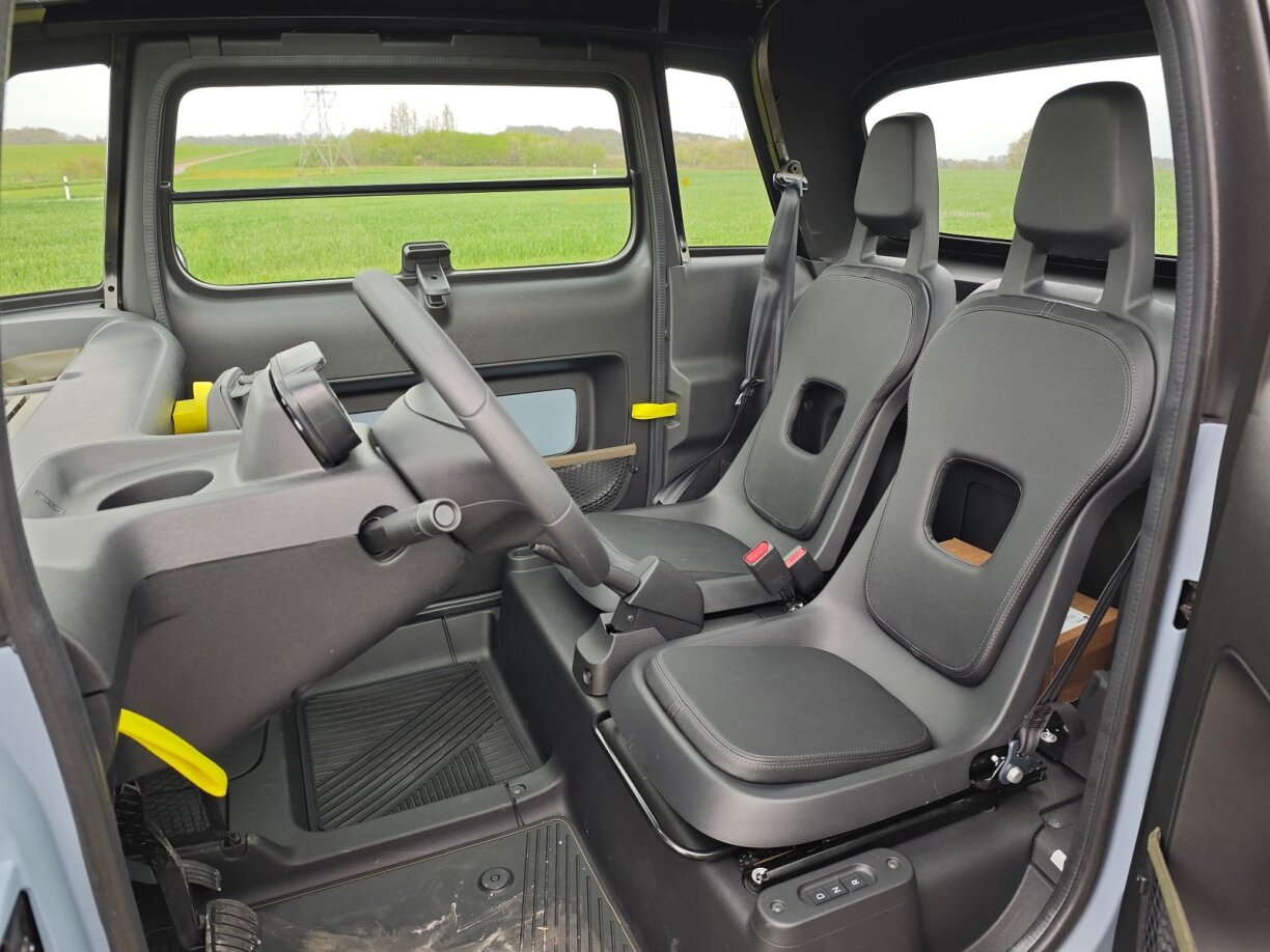 Virun allem gesäit et bannen no vill schwaarzem Plastik aus. Iwwert d’Ergonomie an den Infotainment brauche mer net ze schwätzen, béides ass praktesch inexistent. Wier et e 4x4 fir den Terrain géif ech soen, e wier liicht propper ze halen. Ongewinnt ass awer och d’Sëtzpositioun: d’Sëtzer sinn esouwäit hanne montéiert, dass ech d’Gefill hat, ech géif op der Réckbänk sëtzen. Gläichzäiteg ass d’Raumgefill awer gutt, och duerch de Panoramadaach, dee vill Luucht era léisst. Wat mer am Alldag awer gefeelt huet, sinn Oflagen. Där gëtt et der net genuch, an eng Mall gëtt et guer net.