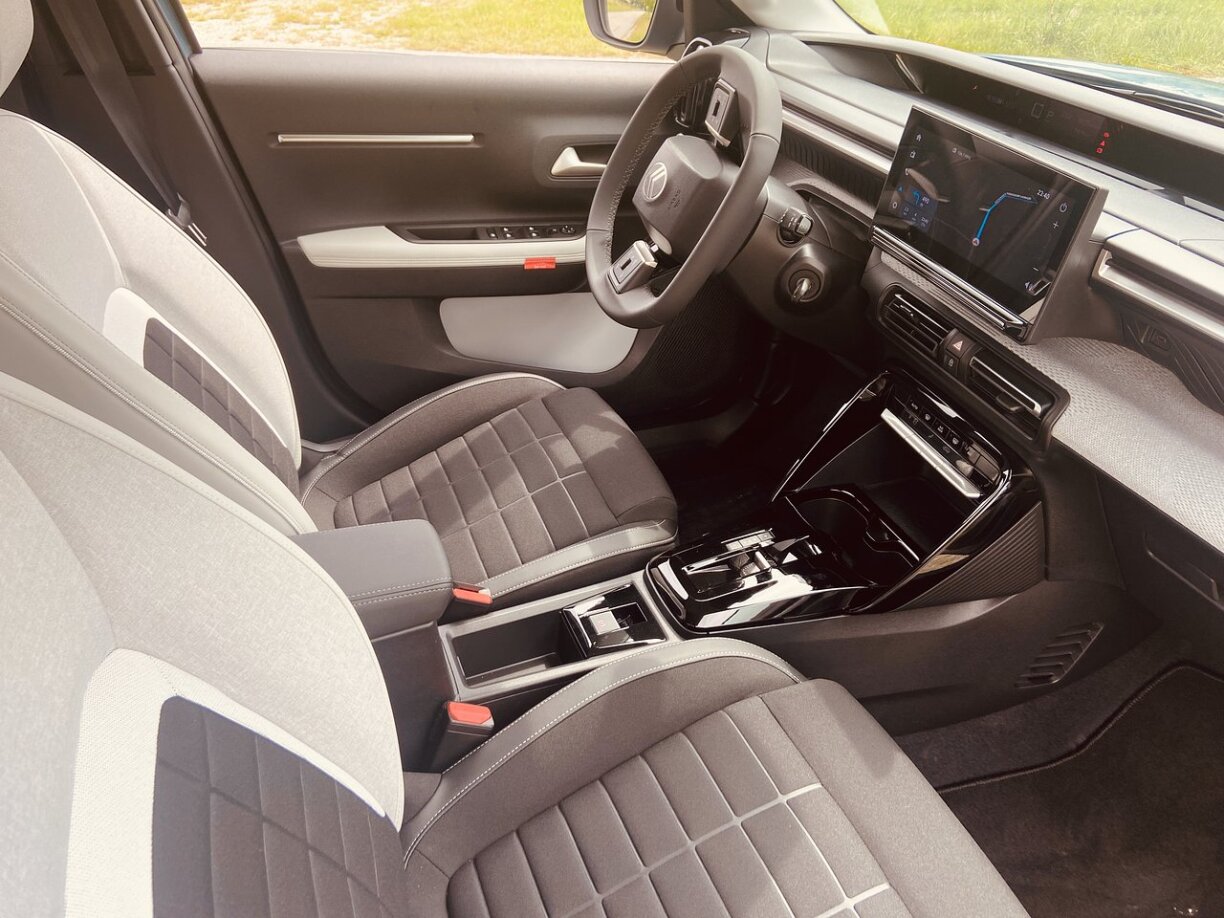 Relativ vill Auto, dee fir dee Präis och gutt verschafft ass. Et däerf een natierlech keng Wonner erwaarden, dofir ass dann och vill haarde Plastik verschaaft. D’Autoen déi mir ze Verfügung gestallt kruten, waren nach an der Pre-Produktioun. Dat heescht, datt virun allem, wat d’Assistentssystemer ugeet, nach net alles funktionéiert huet, wéi et da beim komplett fäerdegen Auto wäert sinn. Dofir wëll ech och net ze vill dorobber agoen. Den Auto fiert sech awer gutt. Virun allem duerch eng direkt a ganz präzis Lenkung. D’Fuerwierk ass gutt ofgestëmmt, kleng Lächer oder Knuppe gi gutt vum C3 absorbéiert.