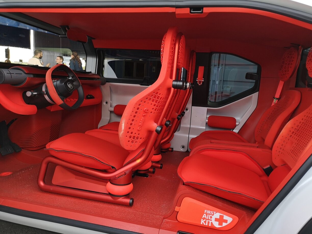 Beim Eraklamme gefält schonn emol direkt dee minimalisteschen an awer ganz lëftegen a geraimege Banneraum. Nëmmen dat néidegst u Knäppercher an Hiewel ass u Bord, alles wat een Display brauch, gëtt iwwert den Handy gesteiert. D’Sëtzer sinn aus enger spezieller Netzstruktur an de Buedem ware mol Suele vun Turnschlappen.