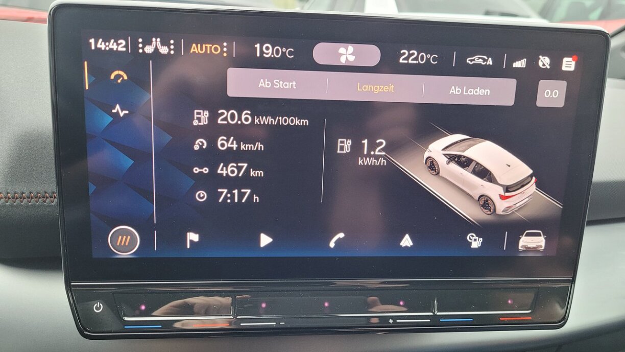 Virop emol erwäänt, dass ech eigentlech en aneren Auto fuere sollt déi Zäit, ma dee war kuerzerhand net disponibel, wouropshin de Cupra Born mir als Alternativ ugebuede gouf. De Cupra Born ass jo de Brudder vum Volkswagen ID.3, a meng éischt Erfarunge mat deem Auto waren éischter gepräägt vu ville Problemer mat der Bord-Elektronik. Deementspriechend skeptesch sinn ech un déi Saach erugaangen. Do gouf zum Gléck awer mëttlerweil nogebessert, sou dass dat kee Problem méi duerstellt.